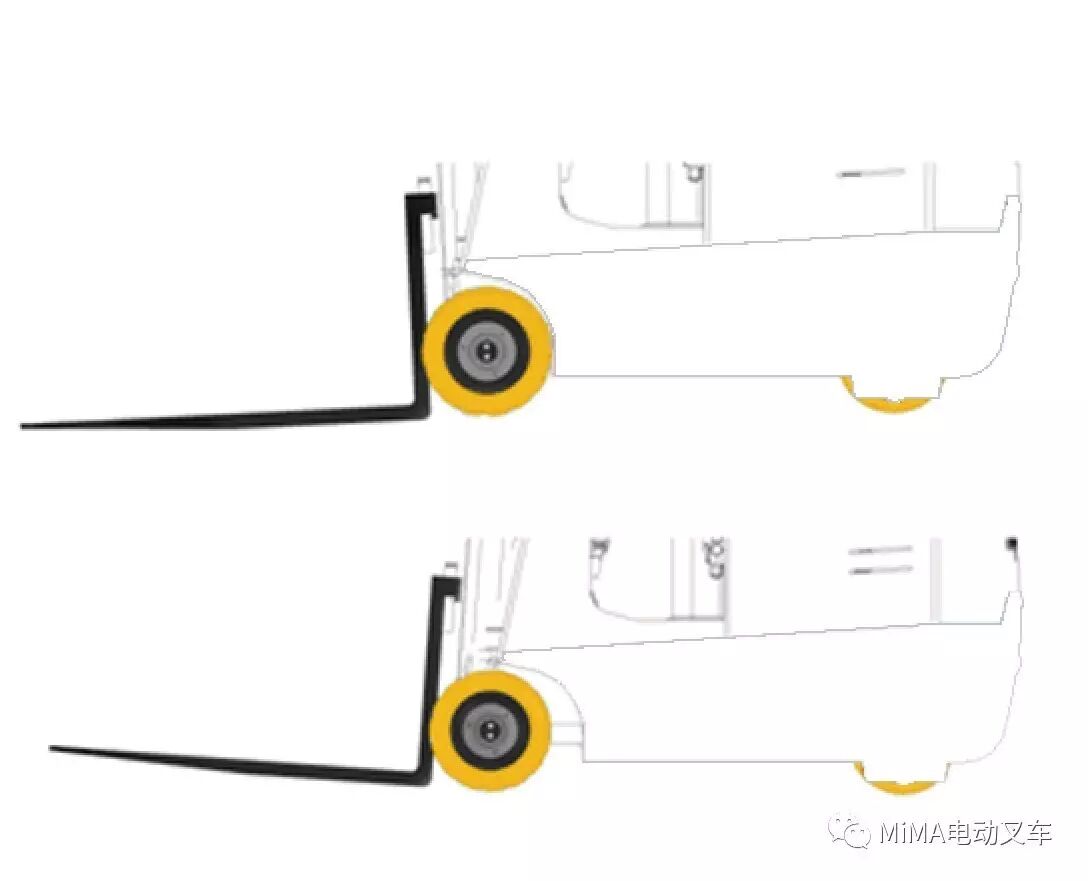 門架前傾時(shí),軸距減小,轉(zhuǎn)彎半徑隨之減小,更靈活;叉貨時(shí)門架后仰,軸距增大,極大地增強(qiáng)了車輛負(fù)載后的穩(wěn)定性。
